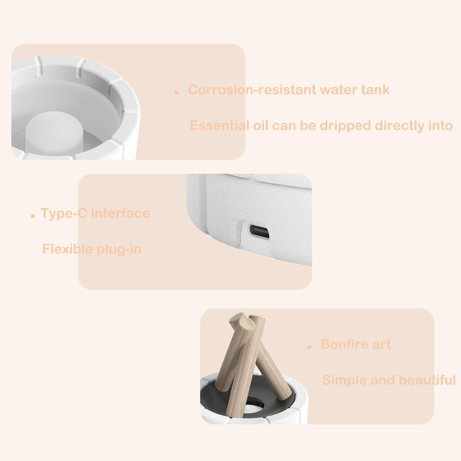- Bonfire Flame Humidifier: This humidifier can effectively increase indoor air humidity. The soothing dry air is good for the skin, respiratory tract and eyes, helping you maintain a comfortable indoor environment.