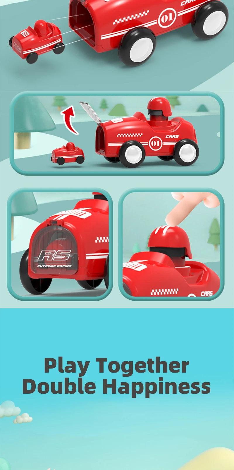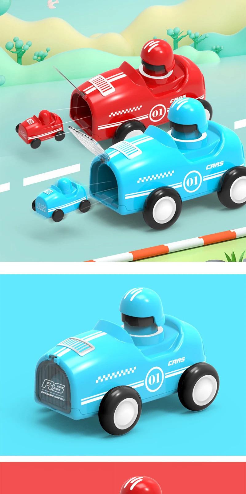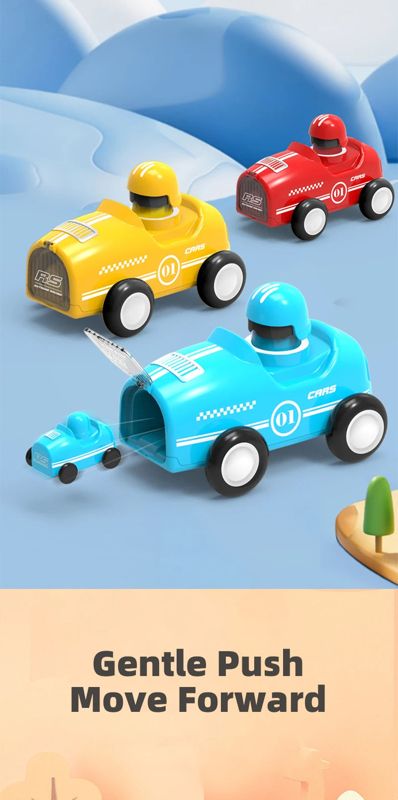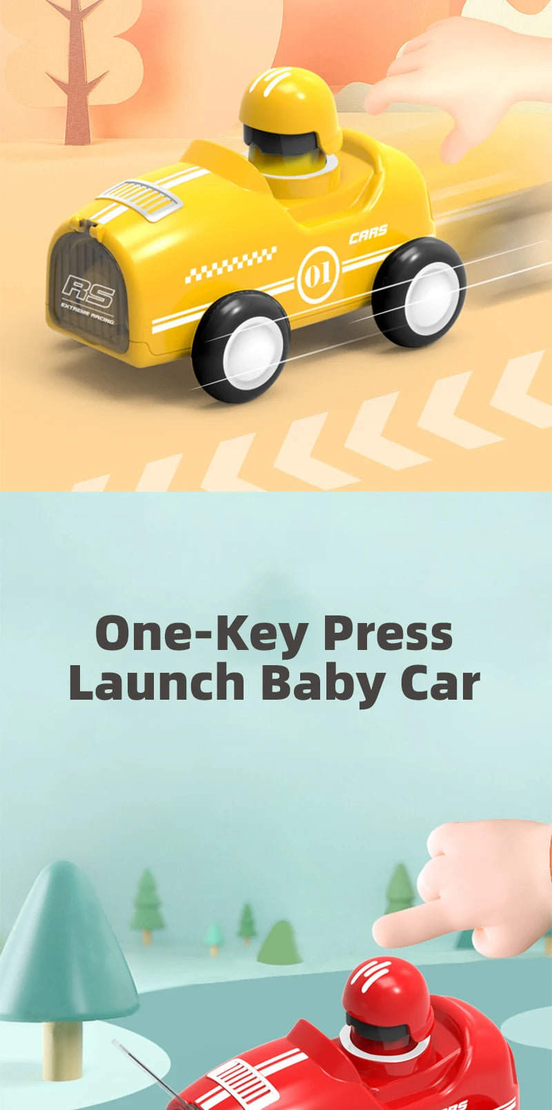 - Press the head of the racing to launch the baby car and the baby car will ejects quickly.