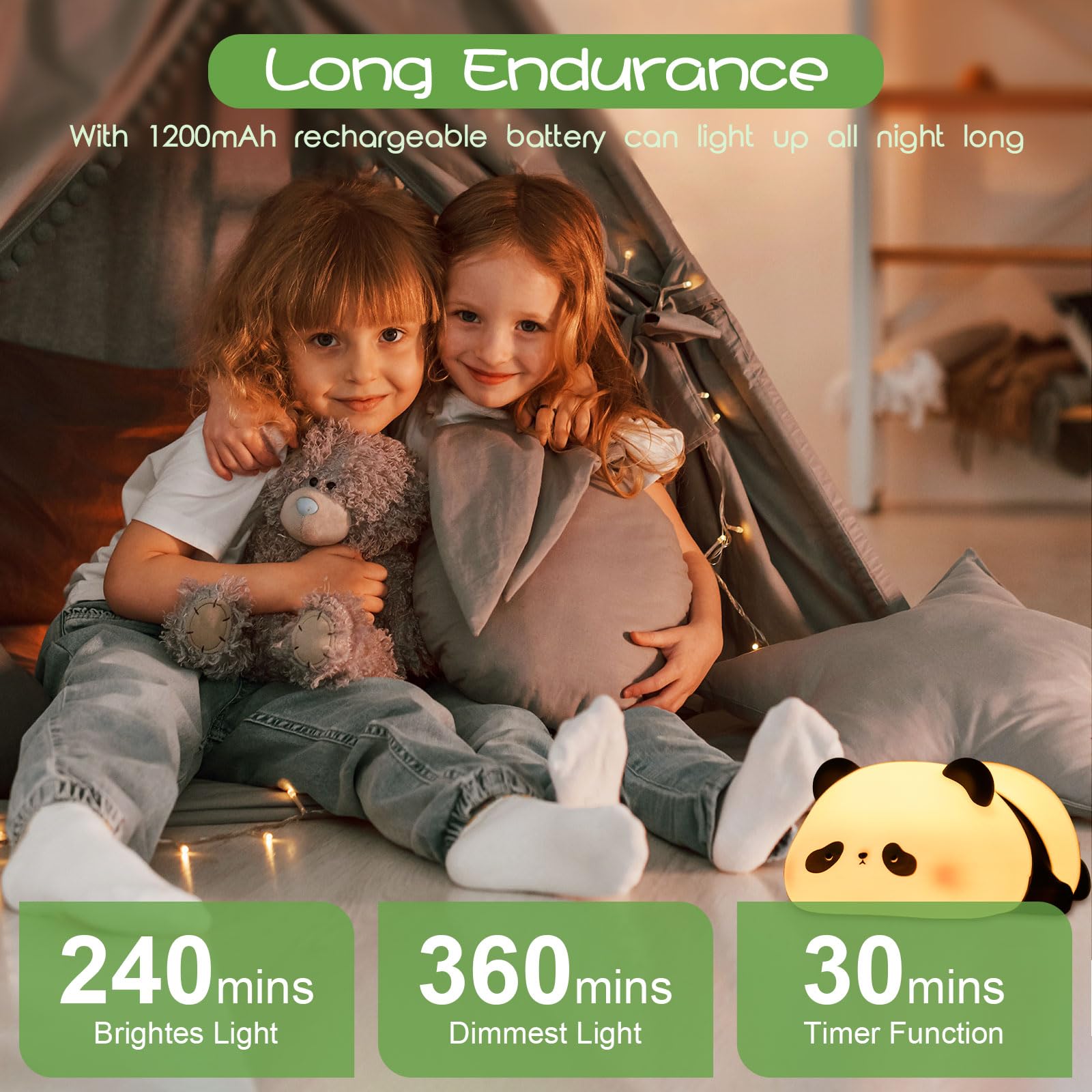 - 🐼【100% BPA Free & Eye Protection】Safety is a top priority when it comes to this night light. Made with safe and non-toxic materials, it's suitable for everyone, including babies. 3000k selected warm and comfortable color light source, perfectly for using at night. Soft warm light is comfortable and easy to cause drowsiness. Anti-blue warm LED light won't flicker or hurt your eyes. Its long battery life ensures that it will last throughout the night, providing a comforting and soothing glow.